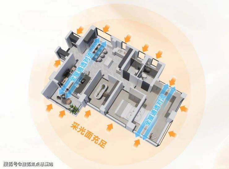 放眼整个白鹅潭,小三房固然稀缺,但能做到全屋空气对流+双卫的80平以下小三房,仅此一盘。