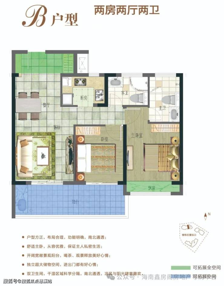 B户型:81.73㎡-84.91㎡两房两厅两卫
