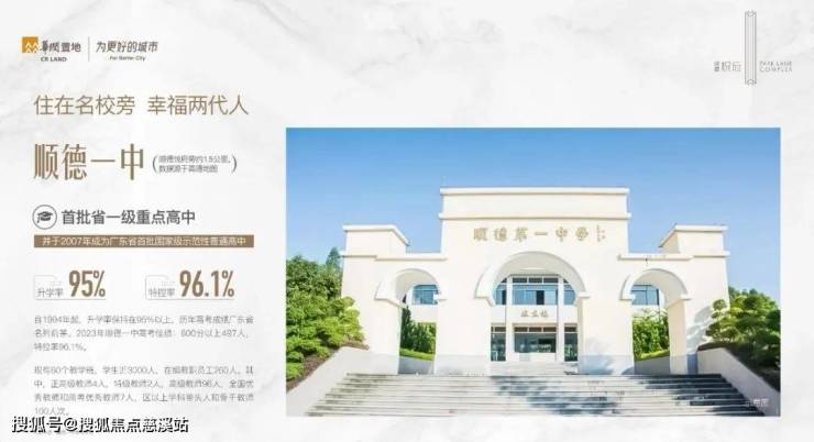 小区门口一路之隔即省一级公办名校顺峰幼儿园,顺峰小学和顺峰初级中学,附近还有大良实验小学,顺德本真未来小学,李兆基中学等;满足孩子3到18岁的全龄段优质教育。地铁一站即可到达顺德第一中学。