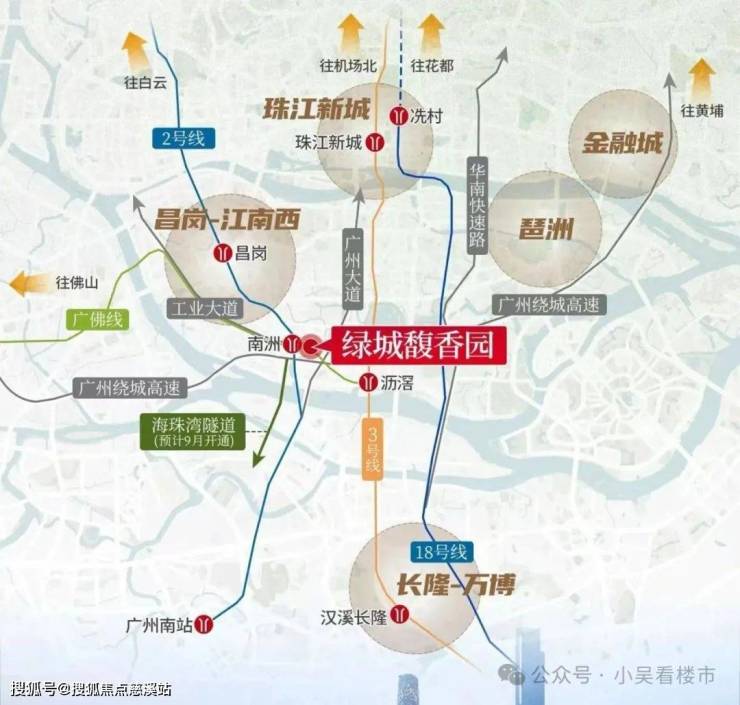 绿城·馥香园 项目门口的内环路东晓南放射高架桥(南洲路至盈丰路段),正在进行局部拆除、重建,与海珠湾隧道对接,届时,业主们15分钟就能畅达广州南。