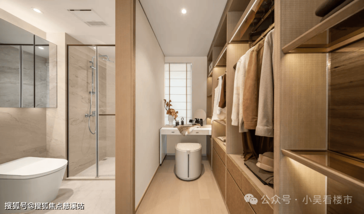 考虑到洗澡睡衣以及换洗衣服的存放,首创广州卫生间200库隐形储物格,还有主卫嵌入式美妆冰箱、一体收纳架等细节,女主人真的爱了爱了。