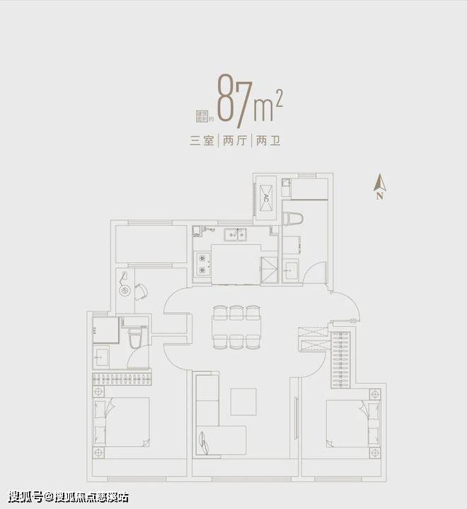 87㎡三室两卫:开阔全明三居,南北通透,空间独立紧凑几乎0浪费。
