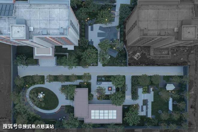 弧形岩板片墙与金属收边呈现丰富的细节层次,强调艺术精神与场地精神的打造。继续往社区内部前行,归家大堂动线包括多重门廊与庭院给业主尊贵的归家仪式感。