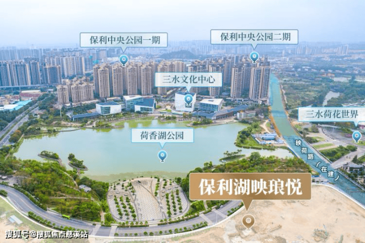 保利湖映琅悦就位于荷香湖北侧,紧挨三水荷花世界。
