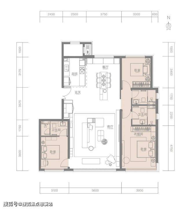 跃级奢阔双厅:客厅南向约5.6米大面宽,阳光清风相伴。同级罕见明窗餐厅打造,南北通透,可摆放岛台、打造储物空间。
