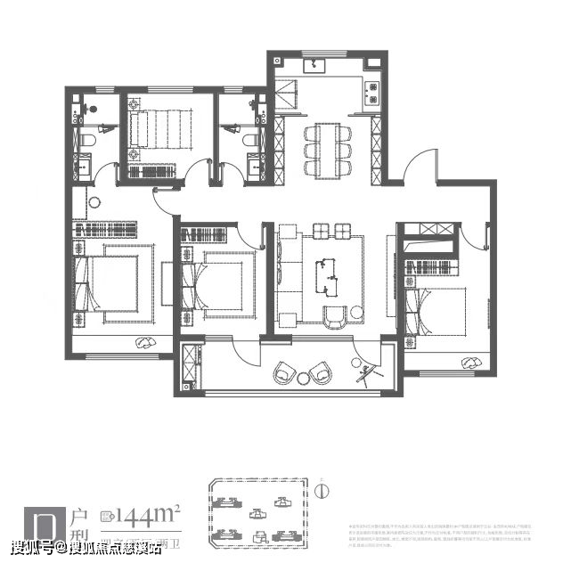 建面约144㎡和165㎡,三款平层户型,以三居/四居的朗阔形态,聚焦城市家庭的生活日常,以更方正实用的空间,更科学的生活动线,更亲近风景的双跨阳台……辅以衡温、衡湿、衡氧、衡净、衡静的“五衡”居住环境,制造着给家的更多元场景。