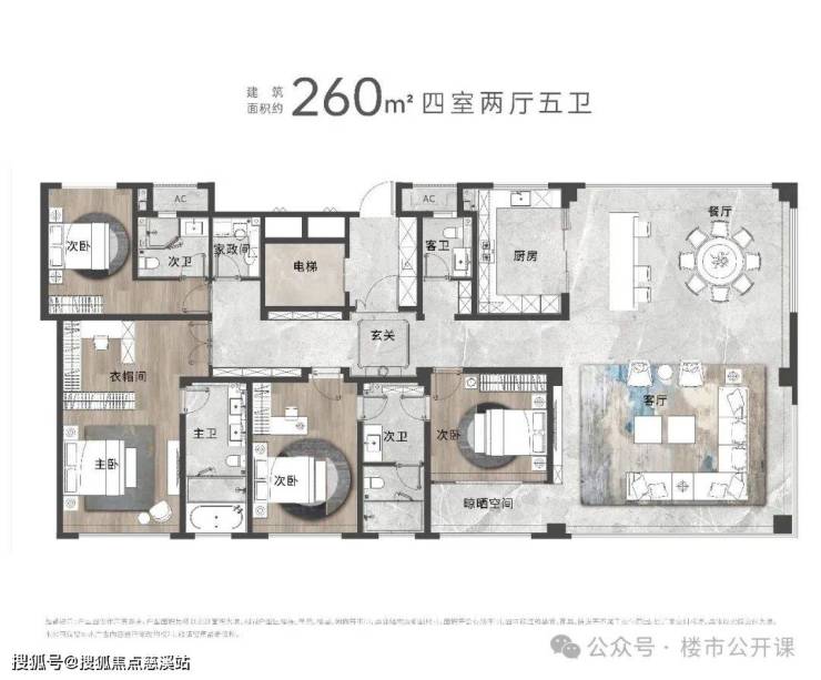 建面约260㎡ 四室两厅五卫