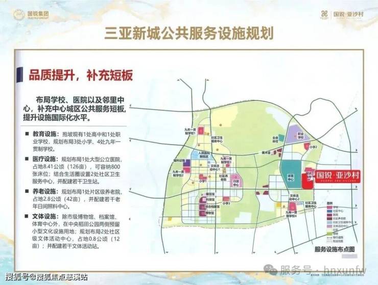 区位价值🚀国锐·亚沙村位于三亚新城·鹿城大道·国际体育中心东侧,占据绝佳地理位置。毗邻三亚新城【行政中心&文化中心】城市新配套,纵享新城发展红利【500米见公园,1公里见森林】100%林荫绿道覆盖,国锐·亚沙村位于行走的森林城市之中【新城交通路网四通八达】多条路线接驳G98环岛高速,鹿城大道直通三亚凤凰国际机场,多条归家动线【新城公共服务设施齐全】配有人民医院新院区,多所学校及养老机构,近距离享受提升后的城市服务水平