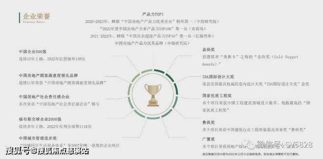 凭借行业领先的产品实力,连续19年位居“中国房地产百强企业综合实力TOP10”、连续12年在“中国城市居民居住满意度”调查中全国领先、2020-2023年蝉联“中国房地产产品力优秀企业”榜单第一 (中指研究院)、多个项目荣获中国工程建设领域设立最早、规格最高的“国家优质工程奖”等荣誉。