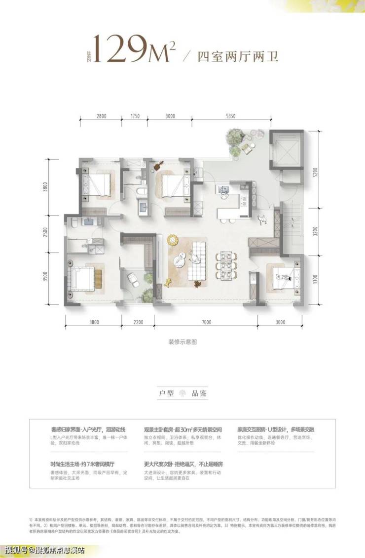 又譬如,约139平米户型有一个270度采光的大端厅,客厅同样连接一个户外景观小阳台。在整体统一封窗提升建筑外立面颜值的同时,又洞悉人与户外景观自由链接的需求,并给予了充分的尊重。