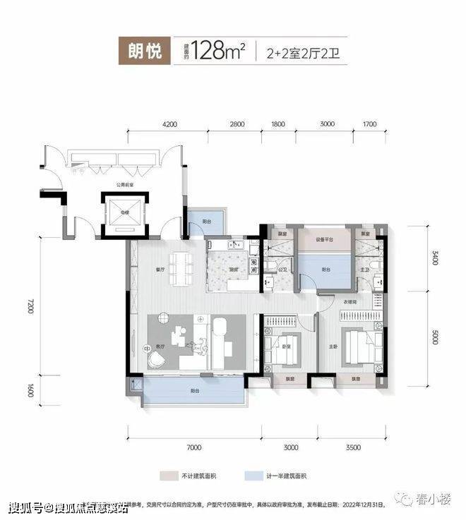 项目的容积率2.5,全部是80米以下的高层,有2T2、2T3、3T4的板楼、类板楼类型,大面宽、短进深,面积控制得很紧凑,108平米的2+1房、128平米的2+2房、142平米的3+1房,然后,高赠送,全部私家电梯厅;边户两北双阳台,南侧还是通长阳台;中间户南向长阳台;所有户型拿出一个北向卧室以阳台报建,不计面积部分较大。这也是城郊项目为了降低价格抗性,所做出的更多赠送面积的牺牲,就是要以同等面积比市区项目要看起来大一些。最关键的是首开拿出来的是毛坯产品,更能发挥出产品的优势。
