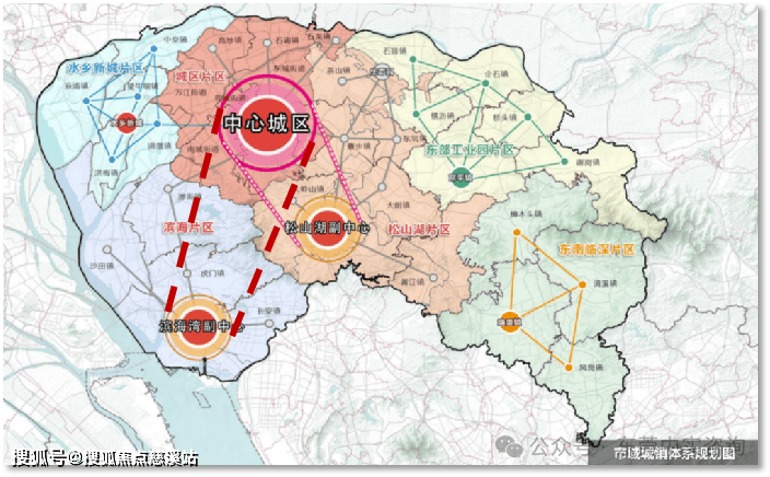 2023年,东莞将形成“一主两副六片区”格局。中心城区是唯一的主中心,滨海湾、松山湖将成为城市副中心。滨海湾将以科技创新为主要职能,其资源要素配置紧紧围绕科技创新这一核心职能进行,体现制造立市的城市特征。