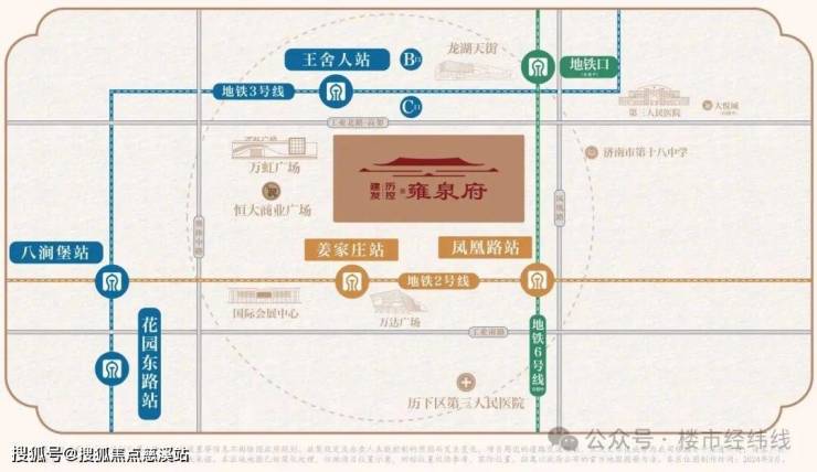 项目周边三条地铁线路环绕,距6号线(在建中)地铁站直线距离约300m、距3号线王舍人站直线距离约400m、距2号线凤凰路站直线距离约1公里;凤凰路、工业北路高架两大主干道贯穿济南;坐拥丰富公交资源,出门即达公交站台。多维立体交通网络加持,快速畅达全城。