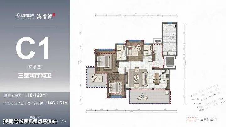 以C1户型为例,建筑面积约118㎡,加上前后两庭院,实际使用面积会达到224㎡左右。