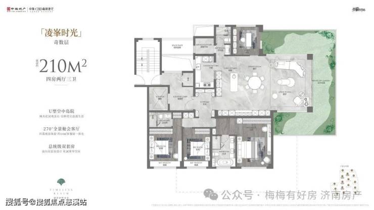 城央花园观景台,270°环幕全景舱,约64㎡客餐厨一体化,南向总统级双套房,得房率约109%-112%