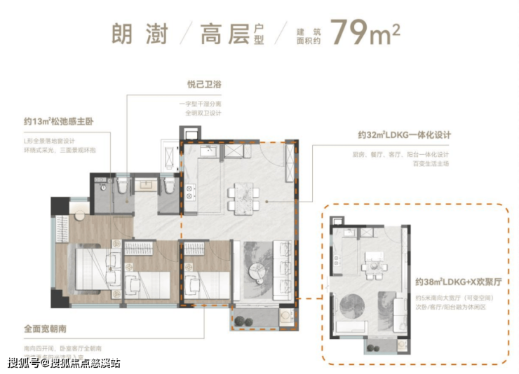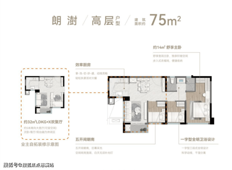 75-79㎡三房:思明东罕见小三房,得房率84%—87%,大部分房源折后单价4.4万—4.6万,总价比市面同面积产品省了100万!79㎡三房在有限面积内做出两个卫生间,解决了早起抢卫生间的痛点。