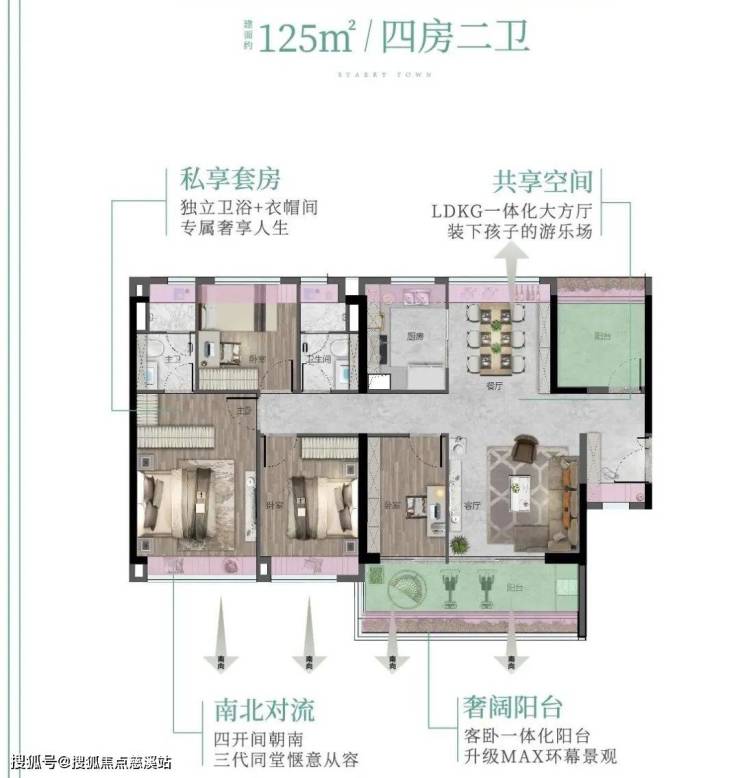 125方4+1房2卫,五开间朝南,客餐厅主卧南北对流,超实用LDKG大方厅,满足生活多样使用