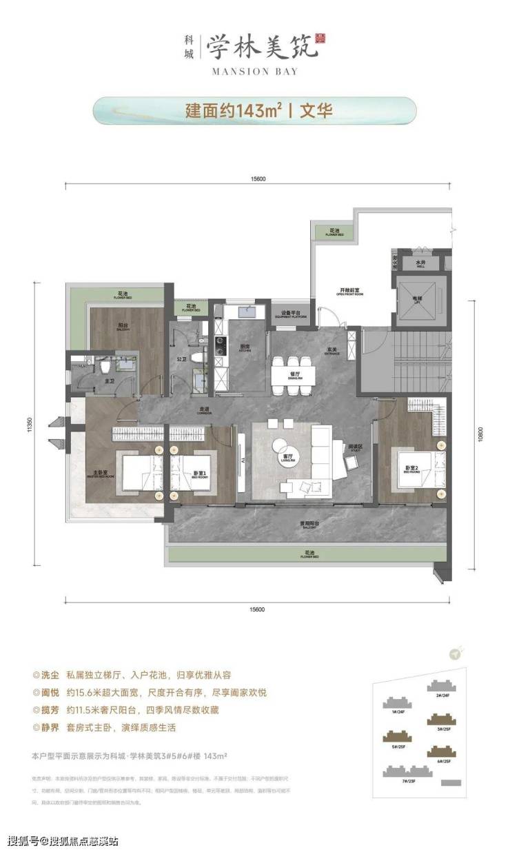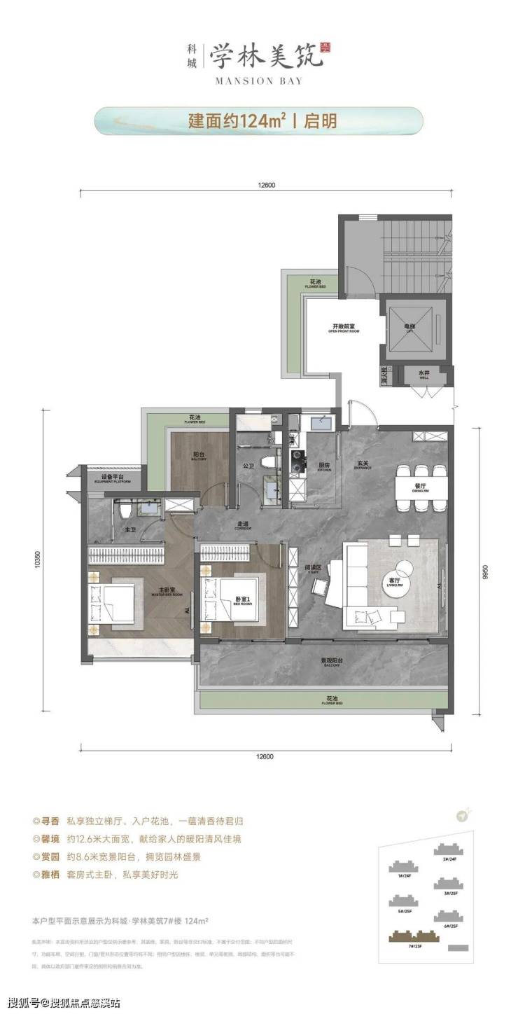 建面约124-179m23-4房,户户标配大面宽空间、入户花园、宽景阳台及满配精装交付规格,户户尊享电梯入户,筑就崖州湾塔尖生活主场;头排产品建面约179m2四房户型更可奢享逾18米奢致面宽、270°环幕观景阳台与双套房高定配置,独揽万千尊崇。