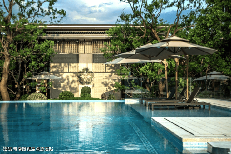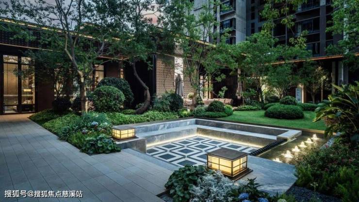 项目采用"十字双轴"空间布局,东西主轴打造礼序归家动线,串联环岛落客区、社区客厅、书屋等节点;南北轴线连通南北花园,让住户在自家庭院就能享受公园美景。围绕这两条轴线,团队精心规划了层层递进的景观空间:环绕社区的景观带如同一条绿色项链,中心花园是社区的活力核心,多个递进式的景观空间引导人们深入探索,不同主题庭院则各具特色,共同营造出书香雅致的居住氛围,打造“出则繁华,入则宁静”的栖居体验。