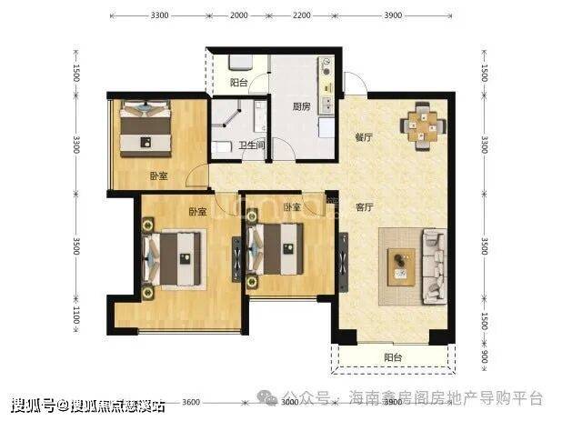 户型三房两厅两卫:116㎡送24㎡ 实得140㎡。