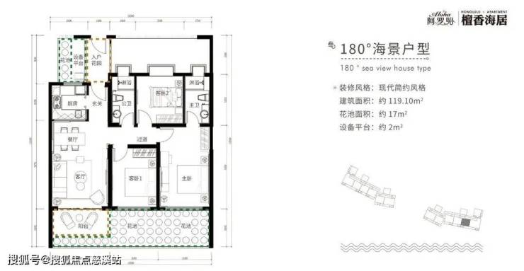 3号房,3房2卫:约119平送19平(总价753-928万)