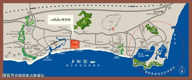 阿罗哈位于清水湾12公里海岸线最中央的核心位置,总占地824亩,总建面55万方,容积率0.8,绿化率60%,是一个低密度高绿化率的滨海度假综合体
