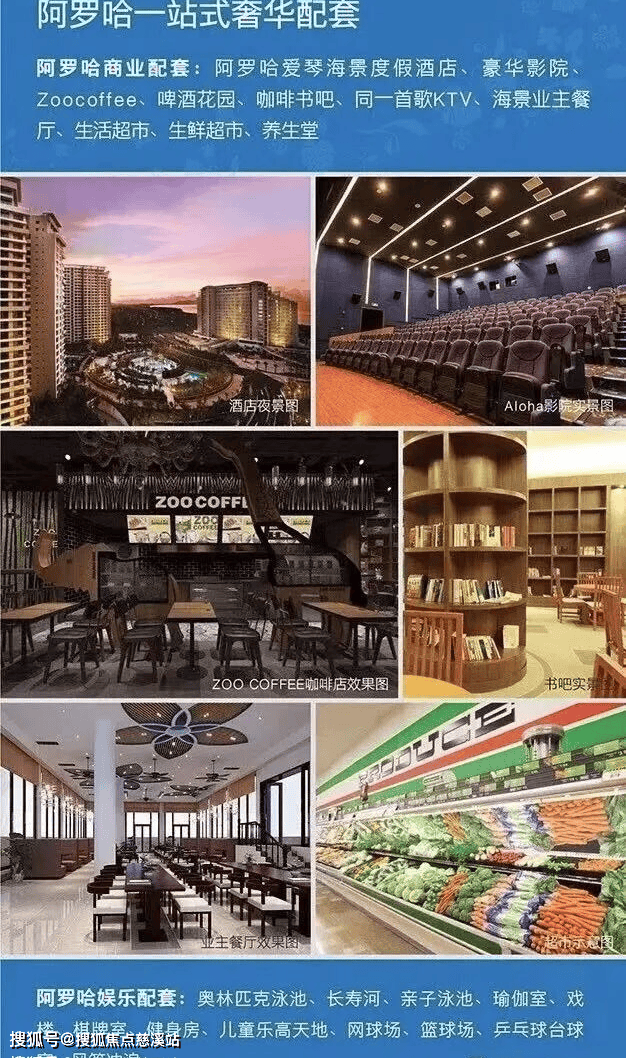 生活超市、生鲜超市动物园咖啡厅阿罗哈院线影院,活动室、业主餐厅,理发店,药店,中医理疗馆
