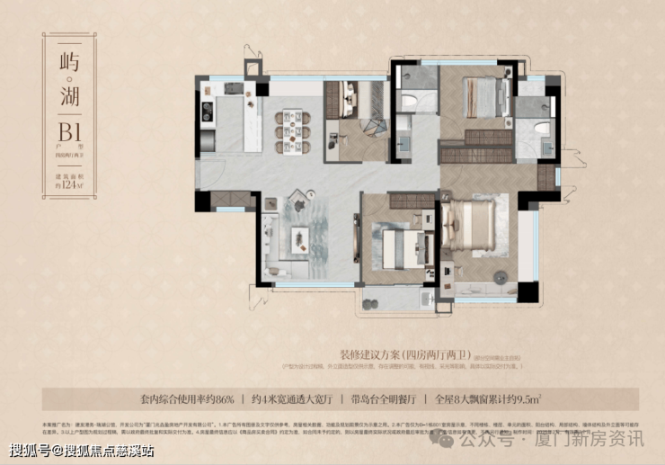 建面约167㎡四房两厅三卫:人生越阶尊邸
