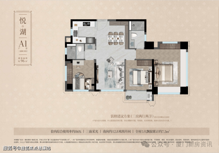 洞察现代家庭“分而不离”的居住理想,96㎡户型为三代同堂家庭匠心打造“一碗汤的距离”亲情生活范本。作为宸启瑞湖空中墅的情感延展,该户型既能实现与父母同住一个社区,相互照顾,又有各自生活空间的三代同堂亲情居模式。同时,它也可化身空中墅业主女主人的私人收藏衣帽间或男主人的静谧书房、甚至也可以买个自家千金的一套公主房,成就一处安放身心、滋养精神的专属天地。