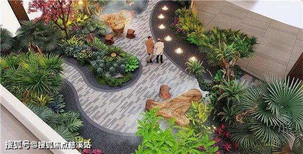 泳池会所景观区:由叠级无边泳池、休闲会客厅、热带雨林等营造热带休闲风光。依照现场地势,利用其高差设计架空层架高泳池,既能很好消化高差又能创造功能型场地。