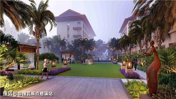 主入口景观:由景墙、水景、景观小品、灯光、热带特色棕榈植物营造热带特色风光和打造项目入口的昭示性。