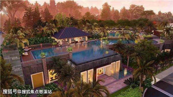 本项目意在极力突显度假氛围,将东南亚风格进行现代化的诠释,尽显优雅与大气。水面结合椰林尽显度假氛围,葱郁的热带植物渲染东南亚风情。