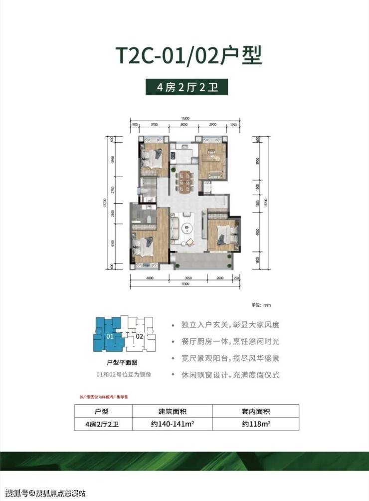 户型面积段:约110-141㎡(3房/4房)