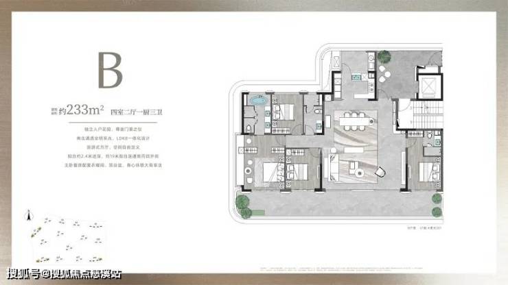 项目户型面积从约188-610㎡,全部为大平层设计,无入门级产品,确保了圈层的纯粹性和居住的舒适度。