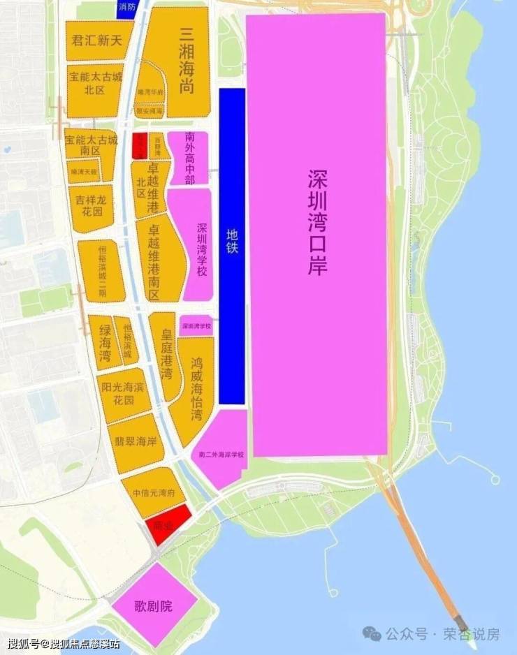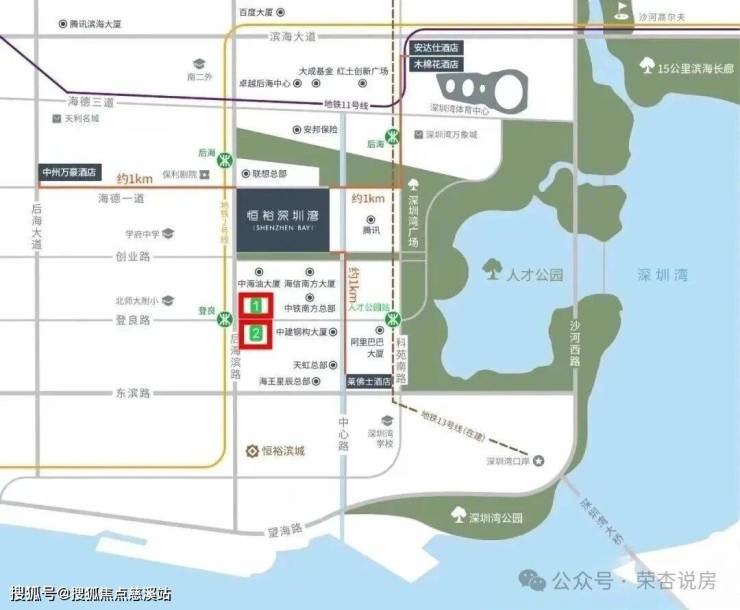 「深圳湾澐玺」虽然大区域在深圳湾,其实更靠近老后海区域,位于深圳湾后海总部基地的最西边,定位是深圳的核心产业链,有阿里、腾讯、联想、小米、节字跳动等头部企业,还有中海油、中铁南方、华润置地等几十家行业巨头入驻,成熟性比深超总要高很多。