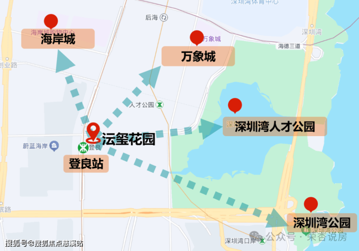 距离2号线登良站C出口仅一路之隔,1站抵达深圳湾万象城(后海站),3站达福田CBD(车公庙站)、前海合作区(前海湾站)。