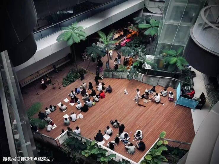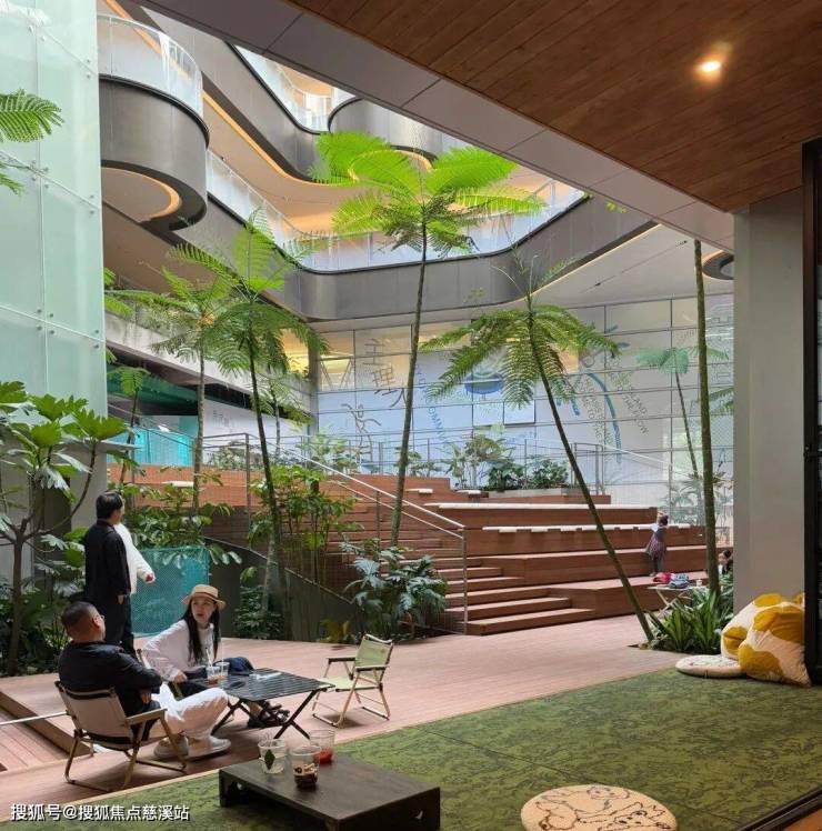 雨林中庭,大庄竹材阶梯与建筑立面和谐统一。竹材为精心设计的高差增添别样韵味,让开放的中庭成为社区温馨活动的核心。无论是欢乐的露天电影,还是热闹的乐队演出,亦或是居民日常的休闲时光,都因竹材的存在更具自然温情。