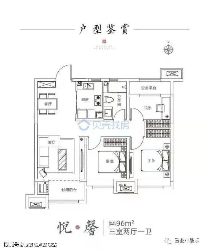【布局】:双卧朝南,三口之家均可居住在南向卧室。
