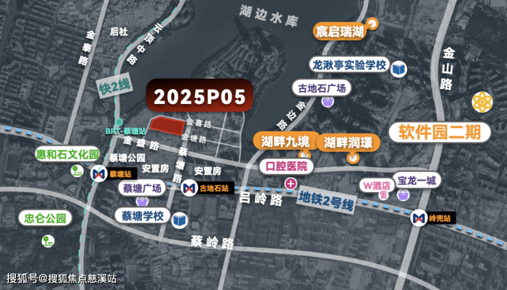 地块周边交通便捷,紧邻BRT及轨道站点,被“生态绿肺”湖边水库环抱,临湖景观优势显著,自然环境优美宜人,未来将打造为绿色生态、充满活力的高品质滨水宜居社区。