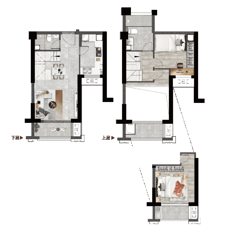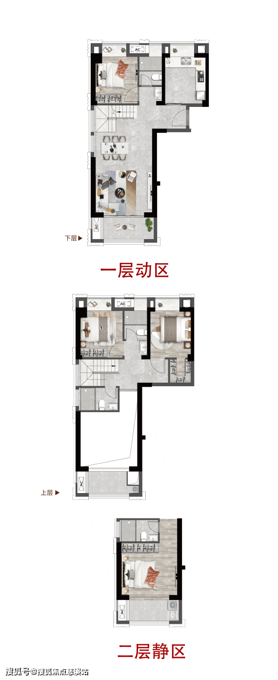 这种上下动静分离的模式,既保障家庭隐私,又减少空间干扰,满足现代家庭对功能与品质的双重诉求,诠释城际理想生活尺度。