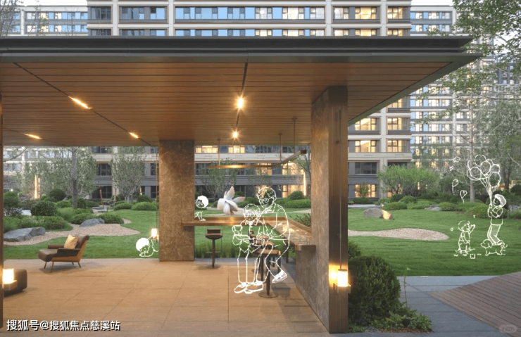 项目社区空间重塑邻里社交与生活美学,打造艺术入户休闲区、园林会客厅、全龄活力聚场等,消融内外空间的情感边界,构筑城际生活【心】美好。