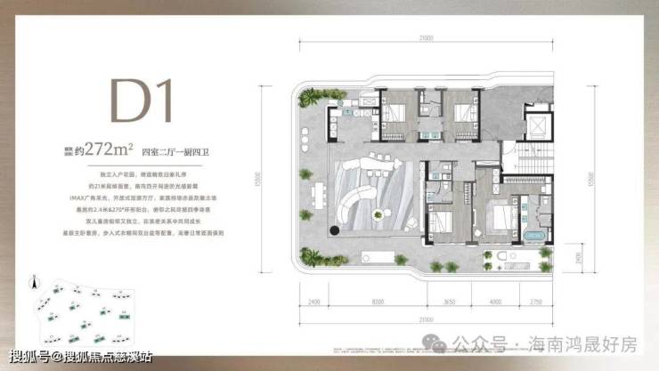 8、纯豪宅设计理念,一梯一户,户户通透,最小户型188平起步,最大面积610平,使得业主圈层更纯粹、更高端