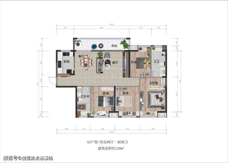 🏠120m²:四房两厅两卫