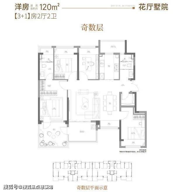 3栋洋房(1+9层)建面约120㎡,得房率约83%,加上赠送面积,得房率约107%;