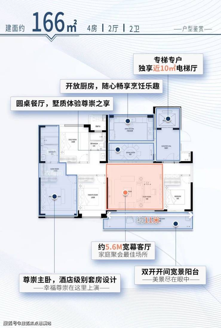 143㎡和166㎡两大户型更有惊喜,采用购房者最不能拒绝的纯板楼结构设计,可享专梯专户,独享专属领域让私密度大大上分。
