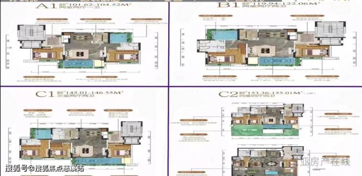 本项目除12号楼是一个单元以外,1~11号楼均为两个单元楼栋单元平层内为一梯两户,主力户型为建筑面积106~104平方米的两室两厅一卫,建筑面积119~122平方米的两室两厅两卫,建筑面积145~146平方米的三房两厅两卫,以及建筑面积153~155平方米的四房四厅四卫的上跃户型。