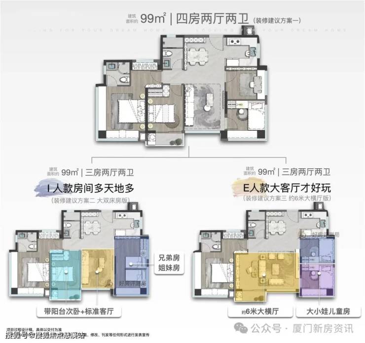 其中,建面约99㎡的四房,作为厦门在售最小面积的四房,户户类边套,堪称性价比之王,套内综合使用率高达约87%,以及南向约13米四开间,让更多阳光和清风自然渗透到日常的生活;使用面积高达22㎡的星级主卧,再加上270°巨幕窗和约7米三飘窗的霸气加持,让人过目难忘;并且该户型还可定制为三房大双床房版、三房大横厅版,让生活更加随心所欲