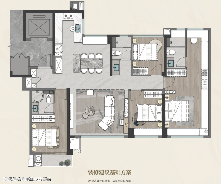 最后,建面约192㎡五房,在客厅中引进了山水庭院(庭院装修非交付),呈现出空中墅的生活氛围,让人忍不住拍案叫绝;南向约18.5米四开间,南北四大对流,更是将室内空间延展性发挥到极致;约40㎡星级主卧,让私享小家化,带有独立卧私厅,衣帽间、独立卫浴等,还配置了约11米极致飘窗,好比安装了一块巨幕影屏,自带超广角镜头感;此外,该户型还可定制为四房南向书房版,营造高雅生活。