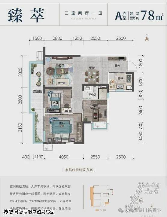 89平3房2厅2卫首付17万左右,月供3500左右