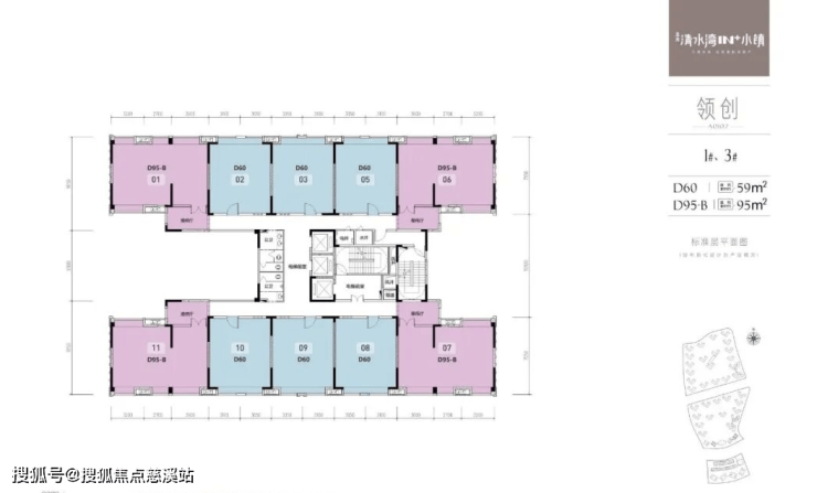 1、领创1栋2栋3栋5栋:面积59和95平米